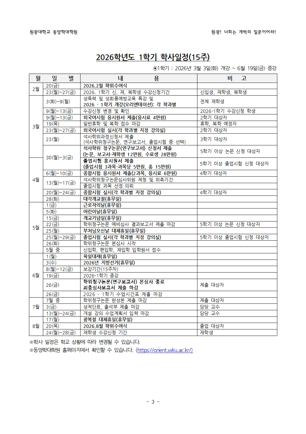 공지사항 홈게시판공지사항 2026-1학기 학사일정 안내 2026-1학기 학사일정 안내 동양학대학원2026-03-03 페이스북 트위터 구글플러스 이메일 프린트 동양학대학원 2026-1학기 학사일정 입니다. ↓↓↓↓↓↓↓↓↓↓↓↓↓↓↓↓↓↓↓↓↓↓ 2026-1학기 학사일정 안내 2026-1학기 학사일정 안내 2026-1학기 학사일정 안내 이전공지사항